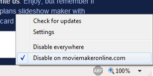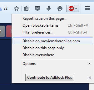 Ücretsiz reklam engelleyici, moviemakeronline.com sitesinde şu şekilde kapatılır: